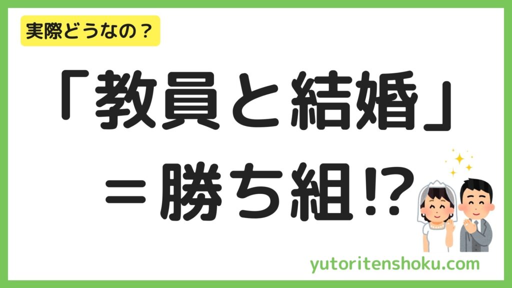 教員と結婚すると勝ち組なの? 教員と結婚する予定だけど大丈夫かな... 教員と結婚すると「勝ち組」だと言われることが多いようですが、実際のところどうなのでしょうか? 確かに、仕事は安定しているし、子供の面倒をよく見てくれそうで良いイメージがあ...