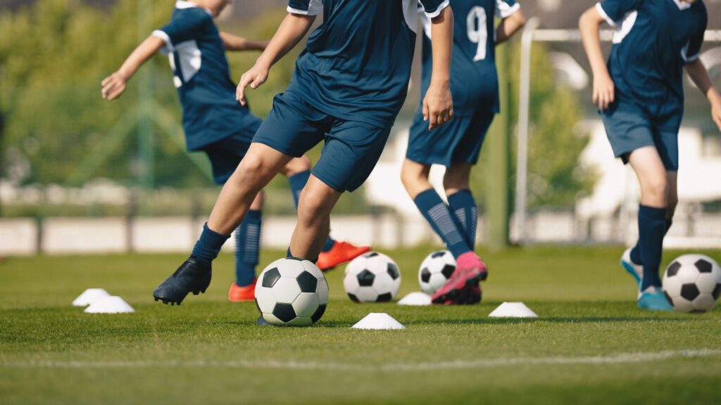 この日は、ラインサッカーを行うため、ボール、コーン、ゼッケンの準備を子どもに頼む。