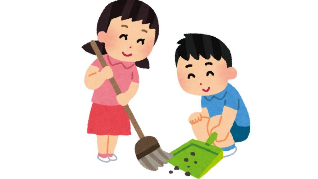 - 他の教室や児童玄関を掃除している児童もいるので見回りにいきます。