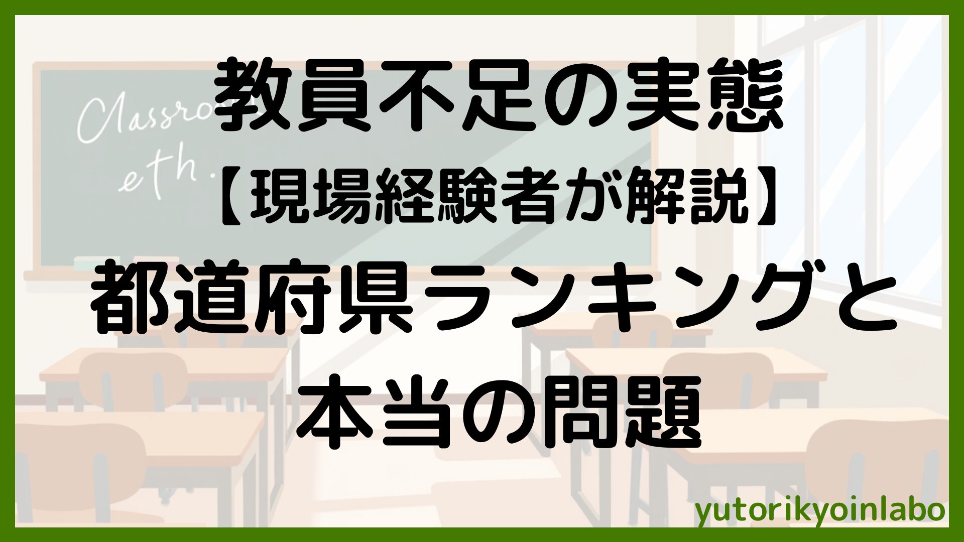 「教員不足」という言葉が報道されるとき、多くの場合は欠員の人数や採用倍率の数字が語られます。でも実際の学校現場を知っている人なら、こう思うはずです。