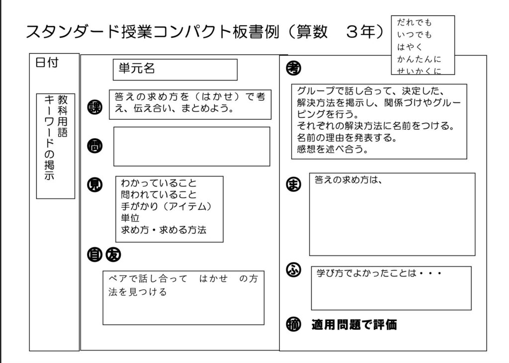 西留安雄の教育実践:授業備品No.253/授業コンパクト板書例を参考にして見るのも良いでしょう。