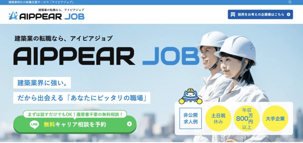 AIPPEAR JOB | 建築業特化の転職支援サービス「アイピアジョブ」