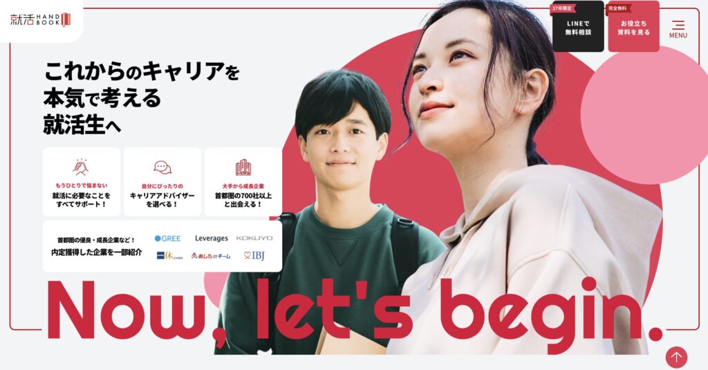 就活HANDBOOKは、大学生・大学院生向けの就職活動支援サイトです。自己分析や企業研究、エントリーシート対策、面接準備など、就活の各ステップに必要な情報をわかりやすく提供しています。学生が自信を持って次の一歩を踏み出せるようサポートするサイトです。